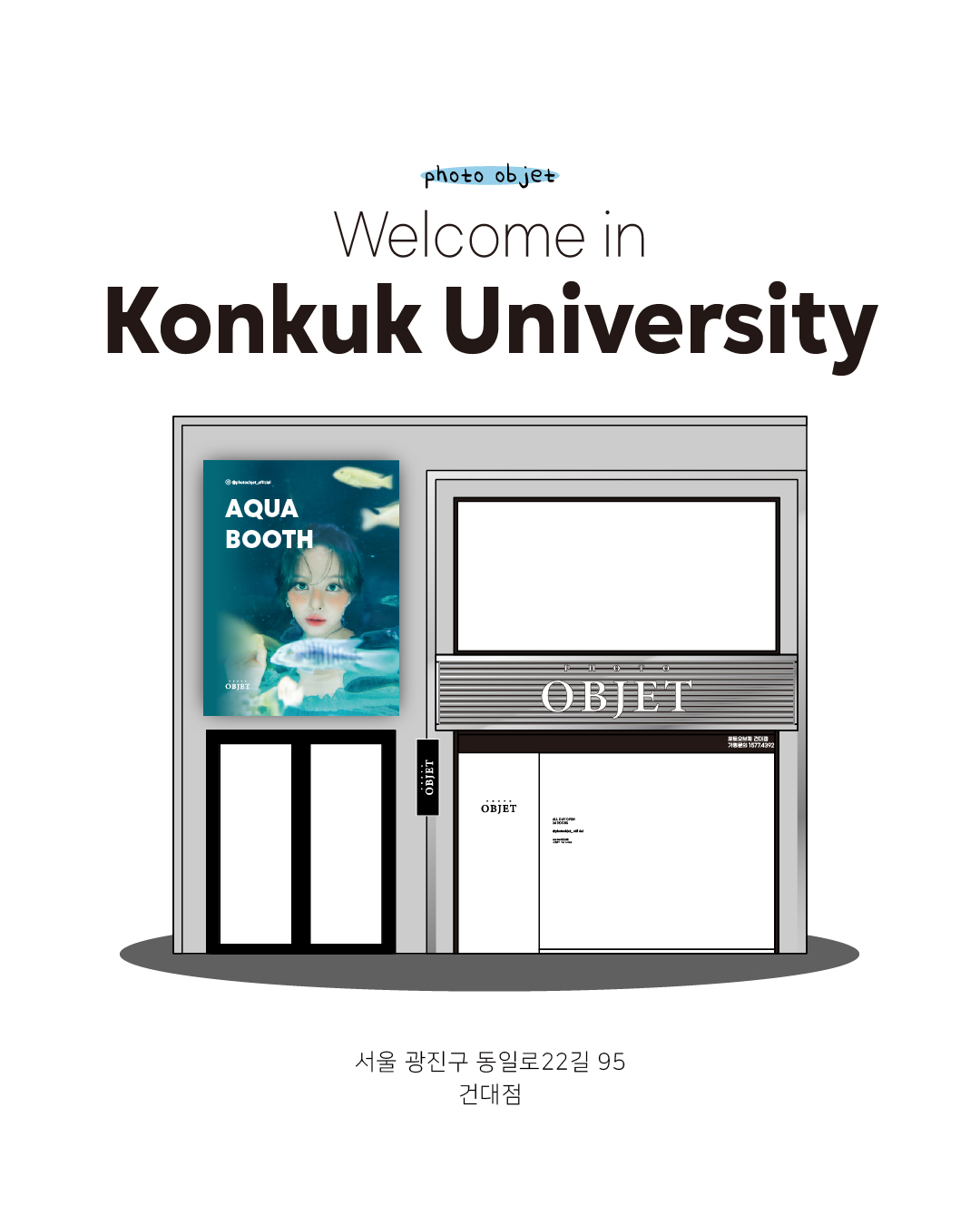 • 포토오브제 건대점 OPEN 1F [ 바스트 부스 / 아쿠아 부스 2개 / 엘레베이터 부스 ] 2F [ 하이앵글 부스 / 로우앵글 부스 / 바스트 부스 / 런드리부스 ] 포토오브제의 열 여덟번째 이야기, 건대점 문 열었습니다.