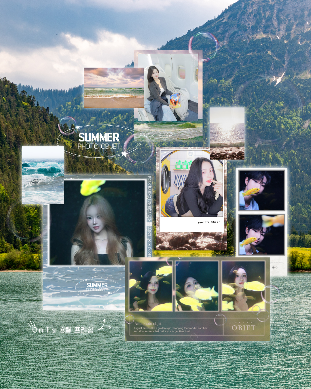 • 포토오브제 8월 프레임 G͜͡o͜͡o͜͡d͜͡(*ˊᵕˋ*)੭ ੈ❤︎ 무더운 여름, 시원한 프레임으로 우리 함께 8월을 기록해보아요! ϵ(っꈍᗜꈍς)϶ 덥다 더워 더우니까 썰렁한 개그 하나 투척할게요! Q. 물고기가 수영을 잘하는 이유는? A. ”그건 물 만난 고기니까!“